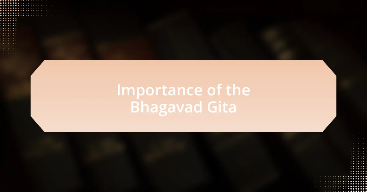 The Bhagavad Gita holds immense significance as a spiritual guide, imparting valuable lessons on life, duty, and the nature of reality. I remember the moment I truly grasped its message about detachment. It transformed my understanding of relationships and responsibilities, making me realize that it’s possible to engage fully in life while remaining grounded. Have you ever experienced a shift in perspective that changed your entire approach to a challenge?